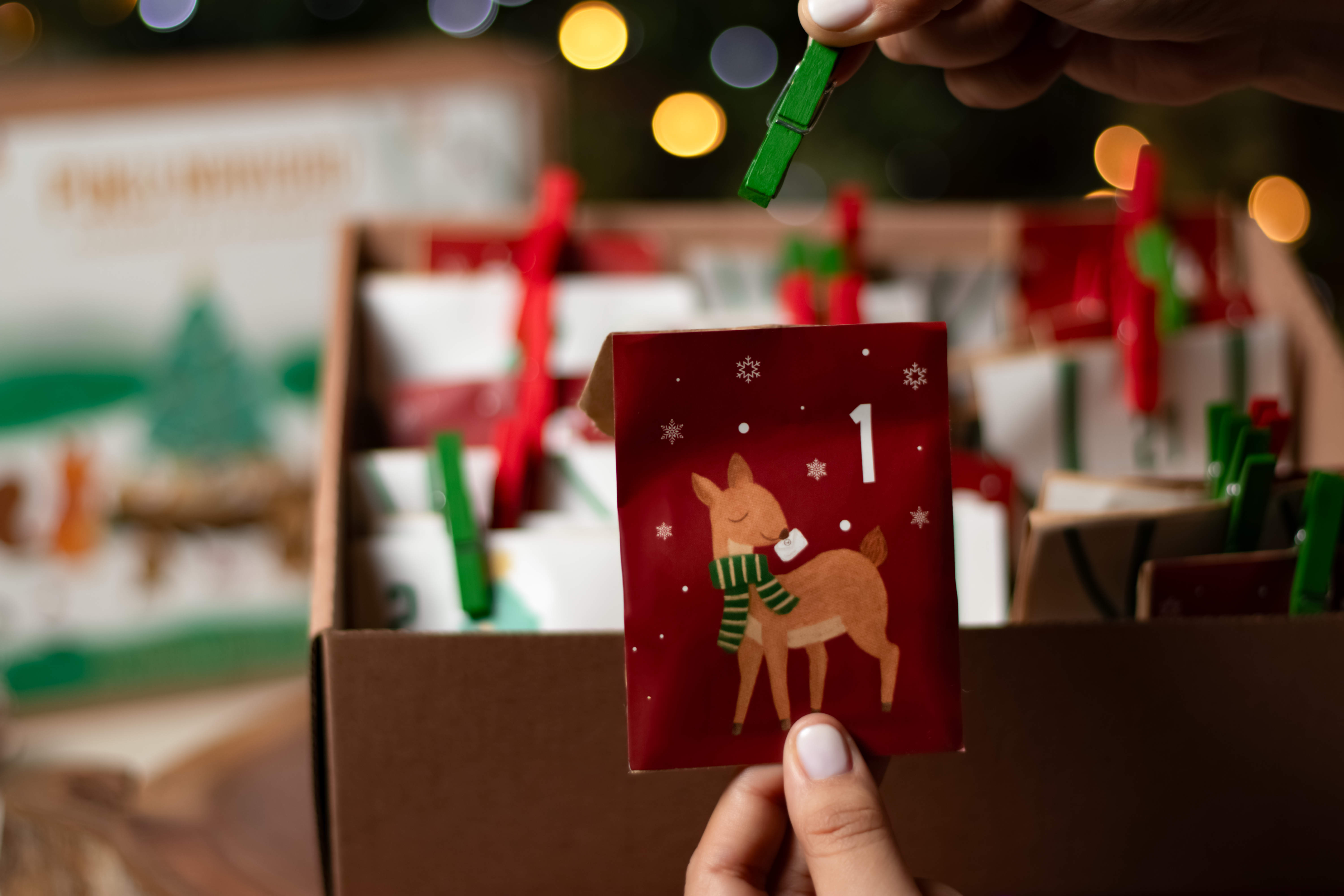 En la caja encontrarás 24 sobrecitos que podrás colgar en alguna pared, en tu árbol de Navidad o donde prefieras.